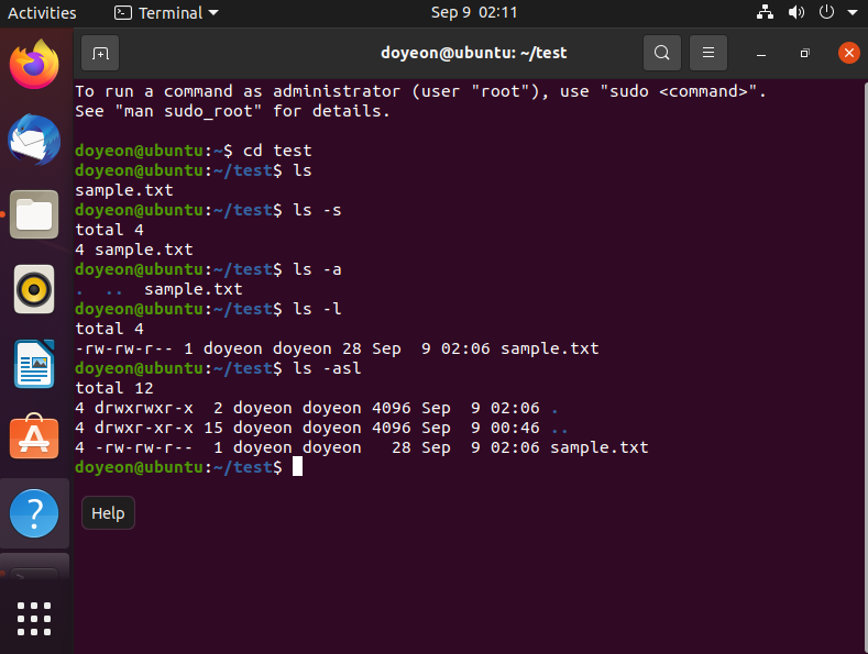 $ ls : 현재 디렉토리의 파일 리스트 출력