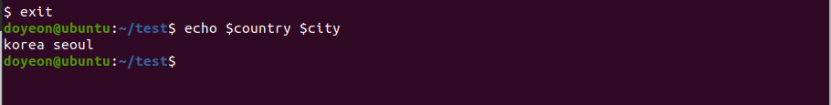 => 종료한 후 다시 bash에서 실행시키면 country와 city가 출력된다.