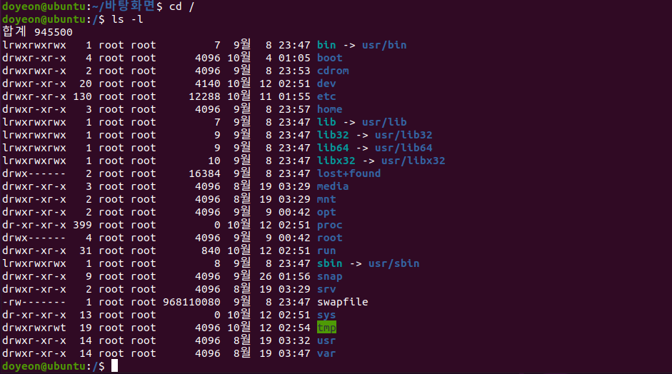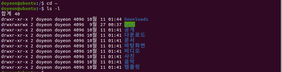 로그인 하면 홈 디렉터리에서부터 작업이 시작된다.