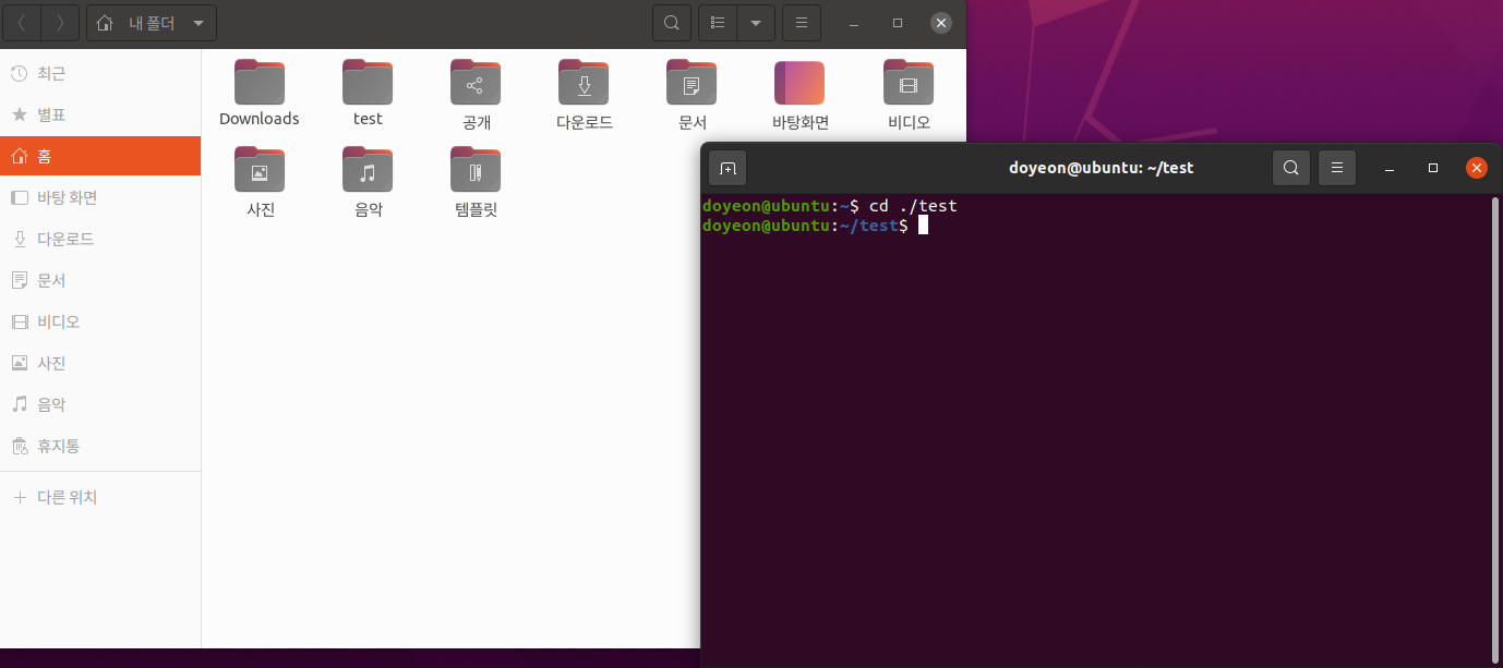 현재 폴더 안의 test 라는 폴더로 가고 싶으면 [cd ./test] 로 이동한다.