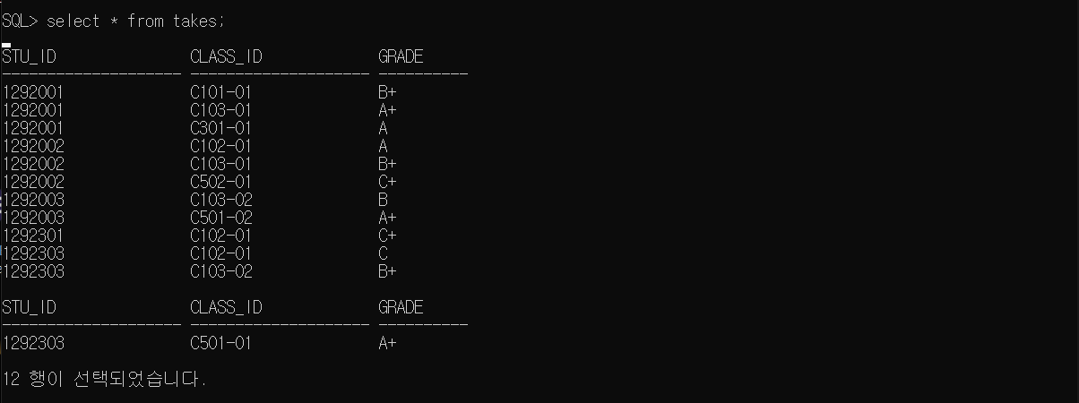 takes 테이블에서 class_id는 class 테이블의 기본키를 참조하는 외래키