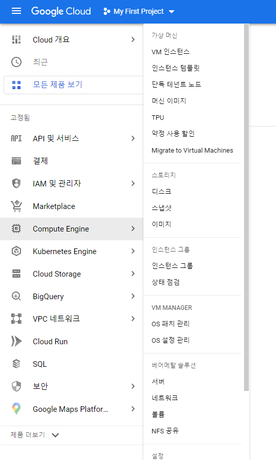 Compute Engine -> VM 인스턴스