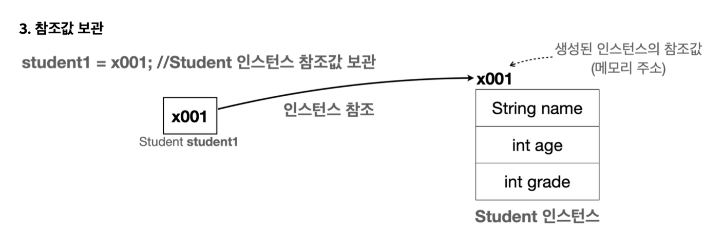 Student student1 = x001; // 2. new Student() 결과로 x001 참조값 반환해 저장