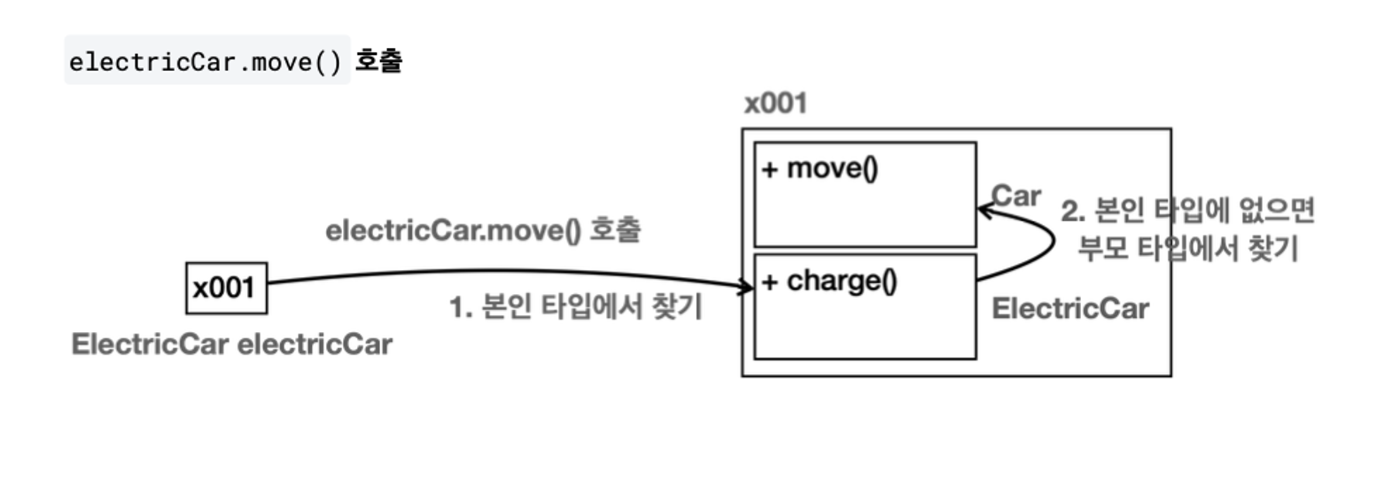 자식 클래스의 참조값.메서드()시 자식 클래스에 해당 메서드가 없으면 부모 클래스에서 찾아 호출한다.