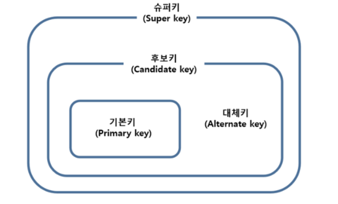 관계형 데이터베이스에서 키(key)는 데이터베이스 테이블에서 각 행을 유일하게 식별하는 데 사용되는 필드나 필드의 조합을 말한다.